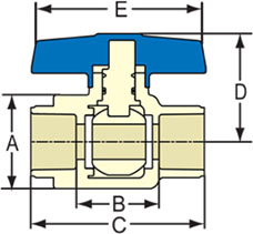 - 1-1/4" CPVC CTS Residential Ball Valve Socket x Socket, EPDM O-Ring