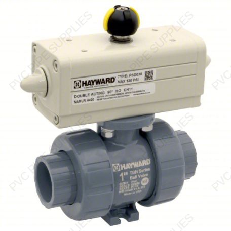 1/2" Hayward PSSTBH Fail-Safe Spring Return Pneumatic Scotch Yoke Actuated True Union CPVC Ball Valve w/Socket and Threaded ends, FPM O-rings