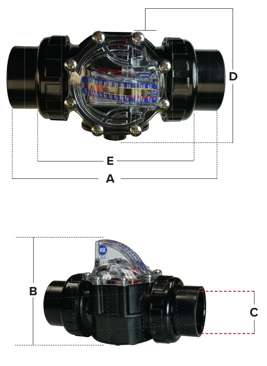AcuFlow™ union valve body with check valve for 2" schedule 40 pipe with GPM scale.